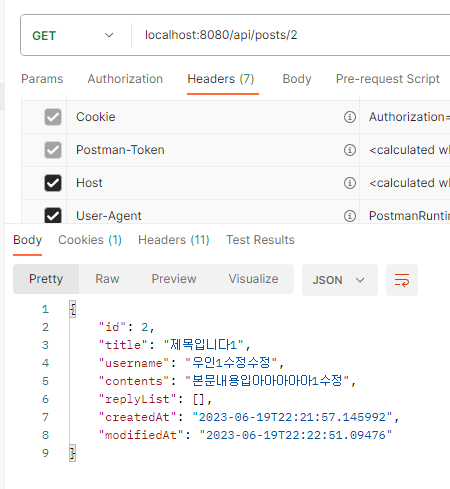 단순히 GET메소드로 포스트ResponseDto를 객체로 리턴받는 건데, 하나하나 할때는 되는데 전체를 하면 안 된다.