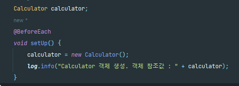 각 테스트 전에 실행이 됐고, 그 결과 Calculator의 객체가 다른 참조값을 가지고 있는 걸 확인할 수 있다.