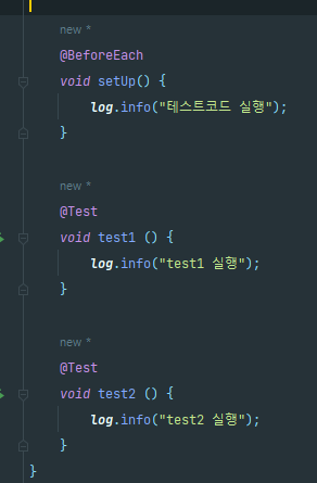 위에서 아주 간략히 작성된 코드들처럼 테스트코드의 기반이 되는 구조가 있다.
