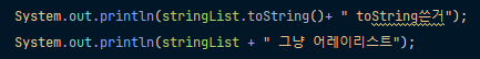 결론적으로 toString은 그냥 대괄호를 포함해서 보기 좋게 문자열로 바꿔주는 매소드가 아닌가 싶다.