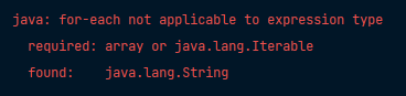 오류 발생. for-each문에서는 배열이나 Iterable이 필요하다는 뜻 같다.
